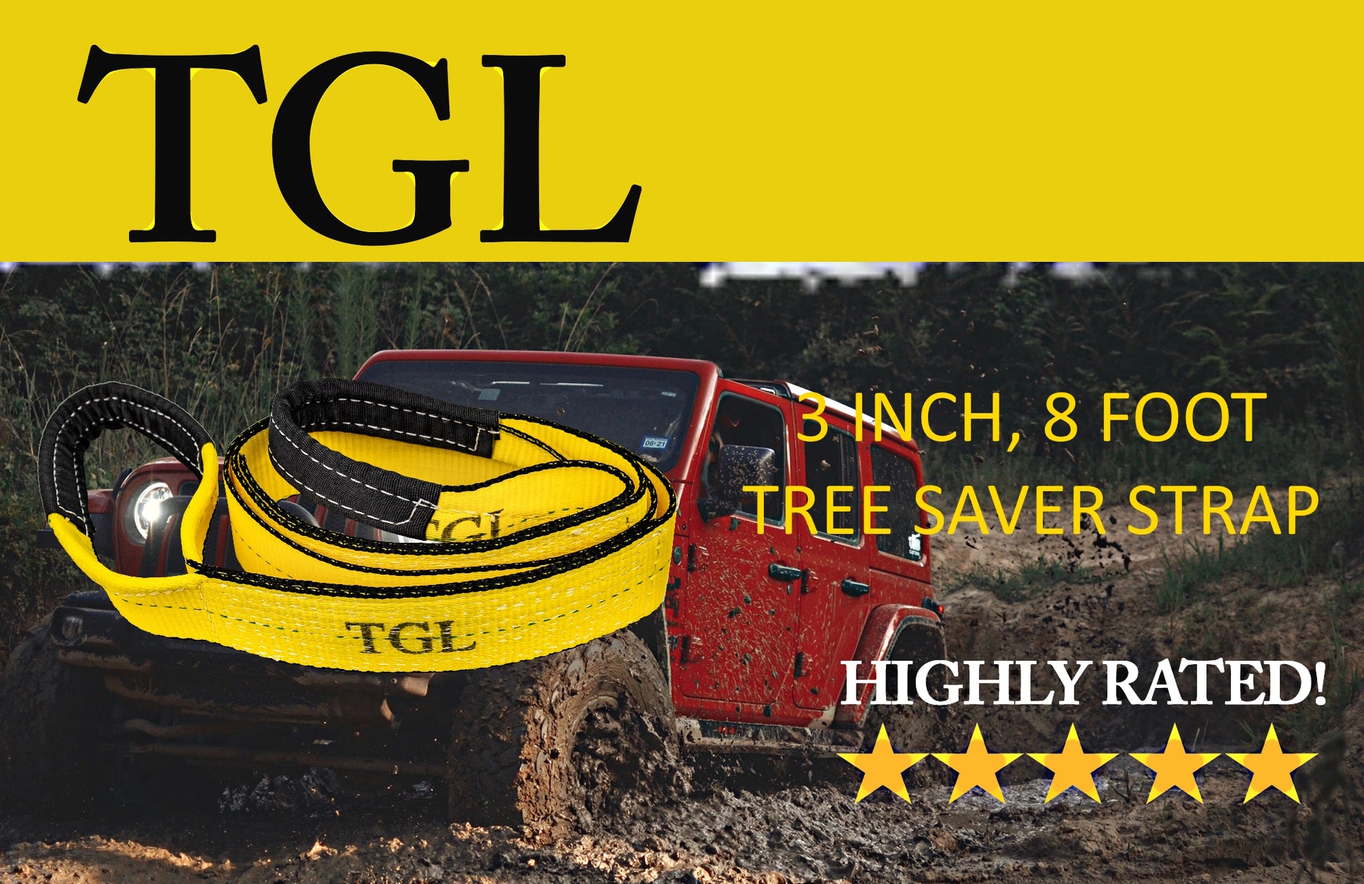 TGL 3 inch, 8 Foot Tree Saver, Emergency Recovery Tow Strap Winch Extension, Pull Strap 30,000 lbs MBS, Reinforced Loop Ends for Truck, UTV, ATV - Compatible with Jeep Accessories, Ford, Toyota
